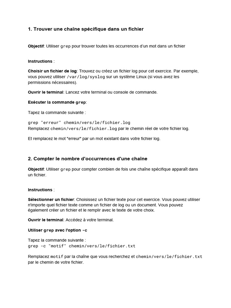 Objectif: Utiliser grep pour compter combien de fois une chaîne spécifique apparaît dans