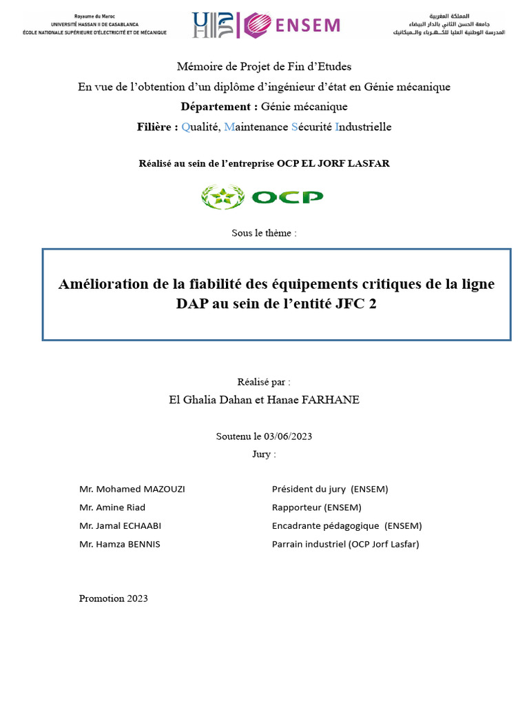 Nous tenons à remercier la direction de Groupe OCP de nous avoir accueilli et accordé cette