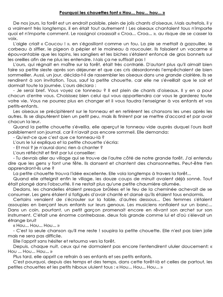 petites chouettes et les petits hiboux ululent tous : « Hou... Hou... Hou... »