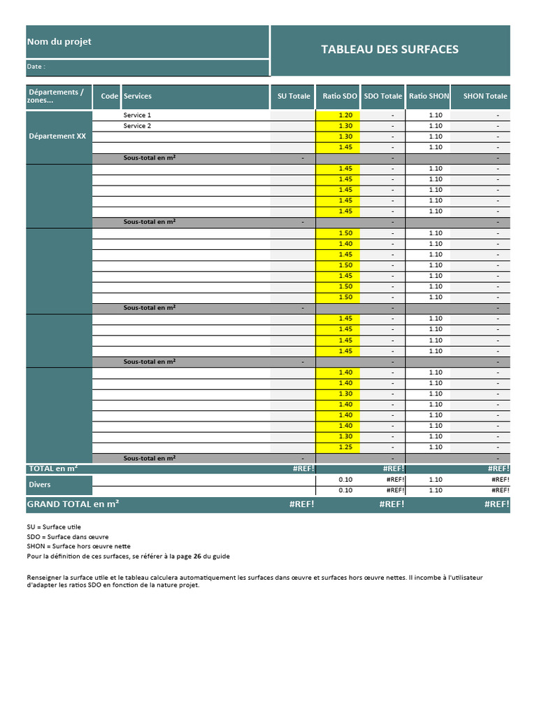 Renseigner la surface utile et le tableau calculera automatiquement les surfaces dans œuvre et surfaces hors œuvre nettes. Il incombe à l'utilisateur
