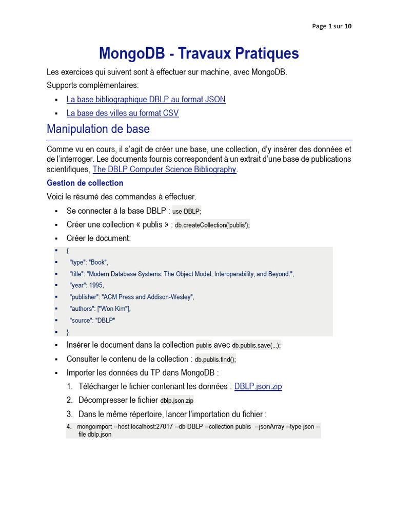 MongoDB - Travaux Pratiques