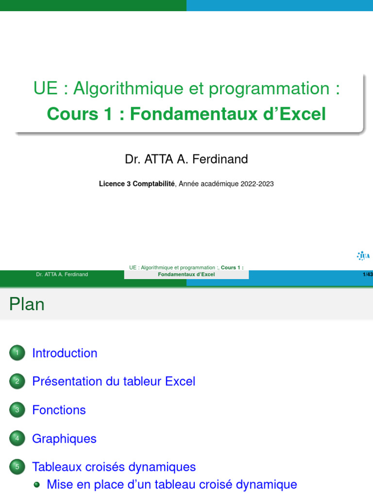 Dr. ATTA A. Ferdinand Fondamentaux d’Excel 1/43