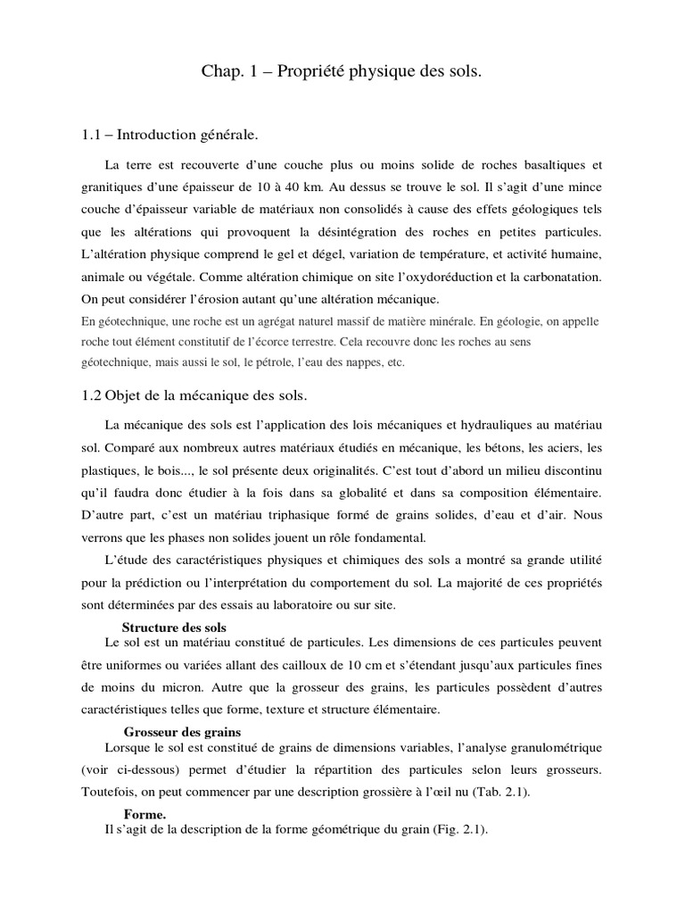 Chap. 1 – Propriété physique des sols.