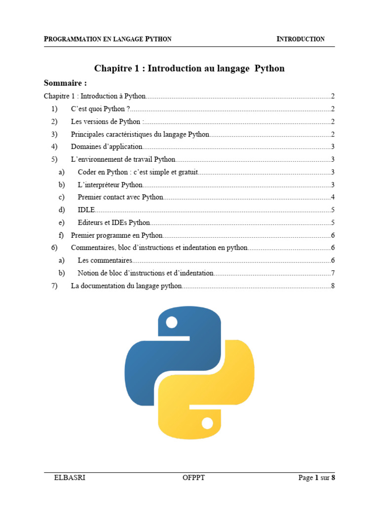 PROGRAMMATION EN LANGAGE PYTHON INTRODUCTION