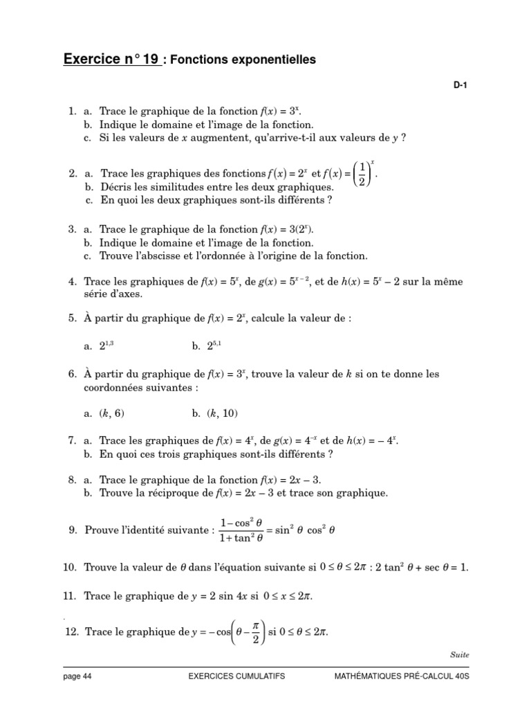page 44 EXERCICES CUMULATIFS MATHÉMATIQUES PRÉ-CALCUL 40S