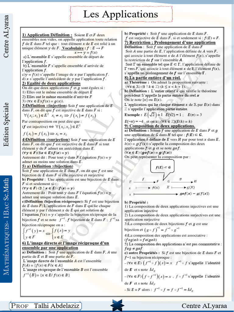 d) 𝑥 s’appelle l’antécédent de 𝑦 par l’application 𝑓. 8) La partie entière d’un réel.