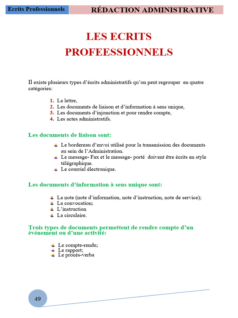 Ecrits Professionnels RÉDACTION ADMINISTRATIVE