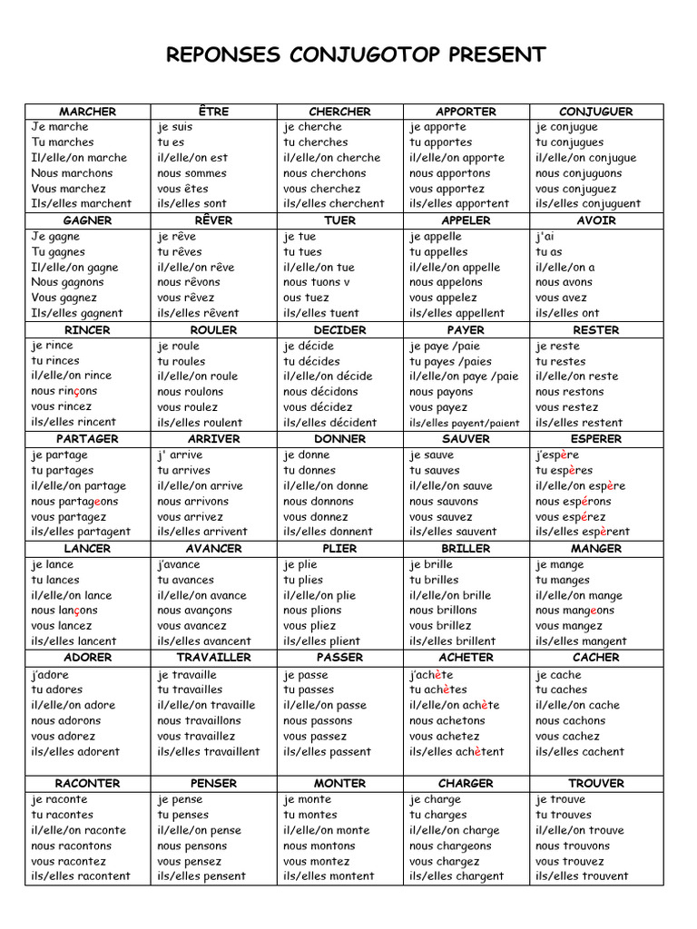 Tu marches tu es tu cherches tu apportes tu conjugues