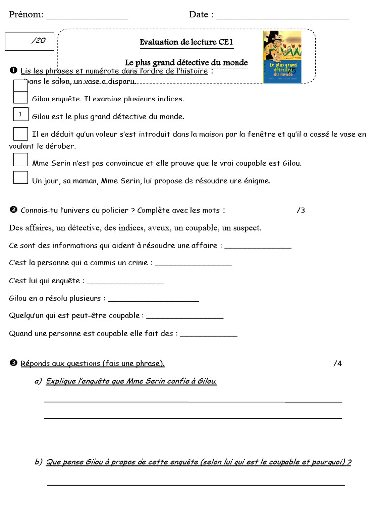 a) Explique l’enquête que Mme Serin confie à Gilou.