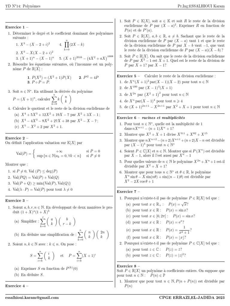 TD N°14: Polynômes Pr,Ing:ESSALHIOUI Karam