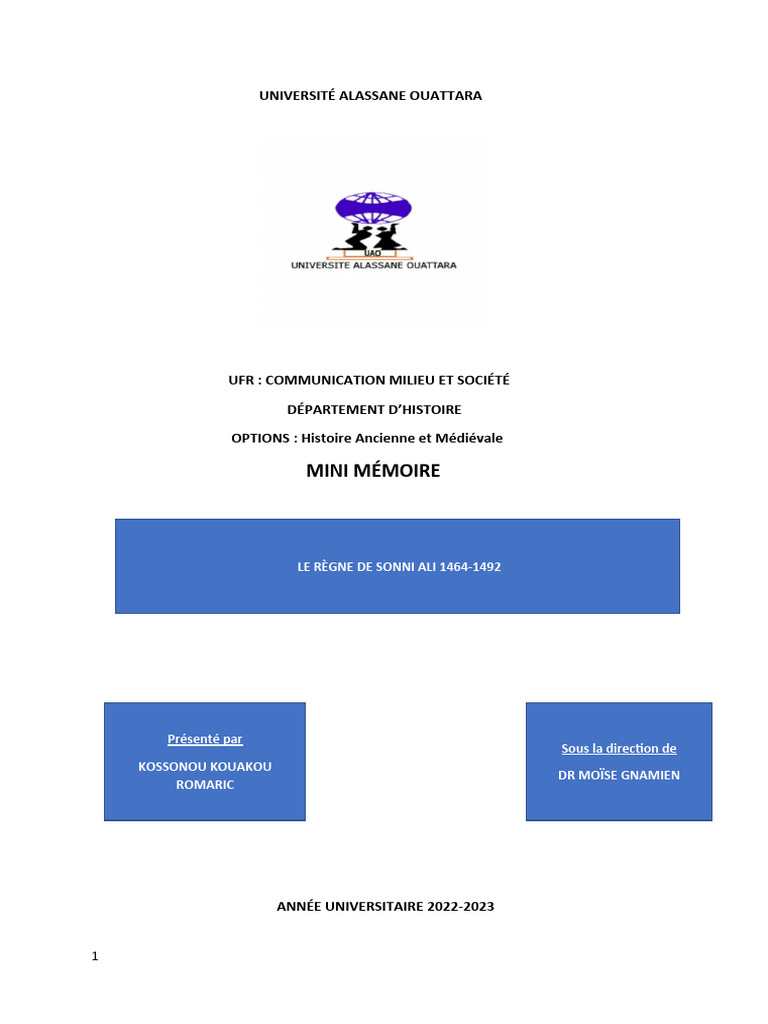 raisons. Tout d’abord, Sonni Ali est une figure importante de l’histoire de l’Afrique de