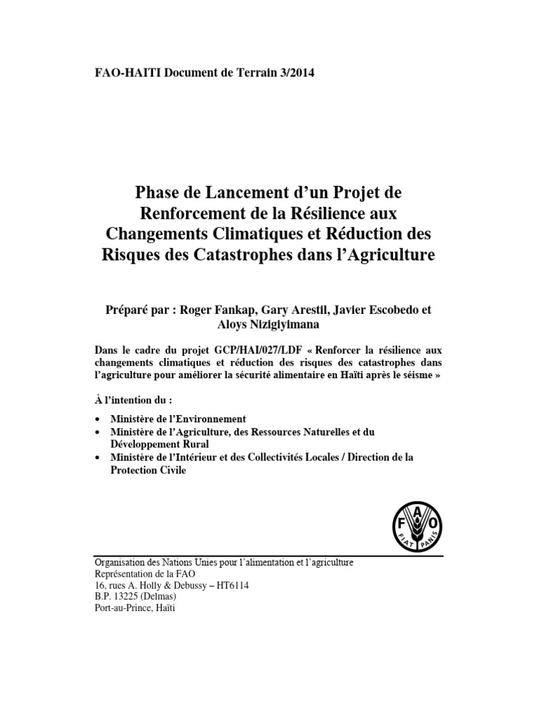 service conjointe précisait : mandat, identification des membres (MDE, MARNDR, MICT/DPC, FAO,