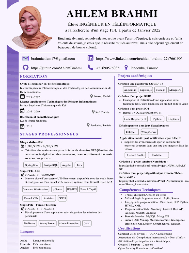 Élève INGÉNIEUR EN TÉLÉINFORMATIQUE