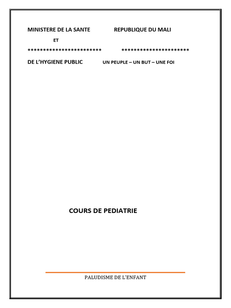 MINISTERE DE LA SANTE REPUBLIQUE DU MALI