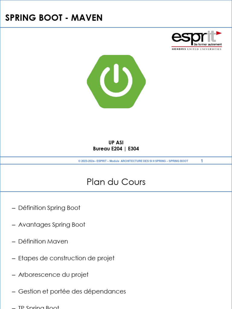 © 2023-2024– ESPRIT – Module ARCHITECTURE DES SI II SPRING – SPRING BOOT 1