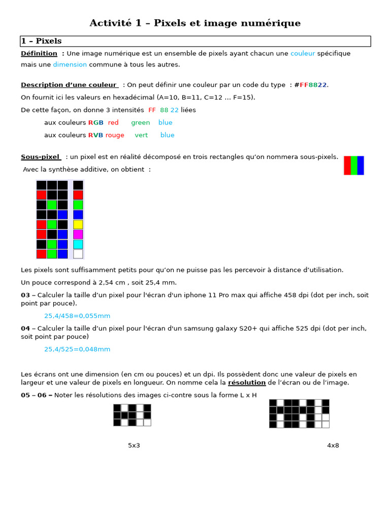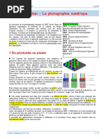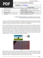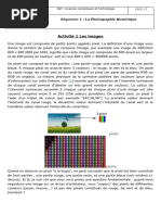 Le document décrit les concepts de base liés aux images numériques, notamment les pixels, les sous-pixels, les photosites et les octets. Il explique comment les couleurs sont représentées et calcule la taille de pixels pour différents écrans.