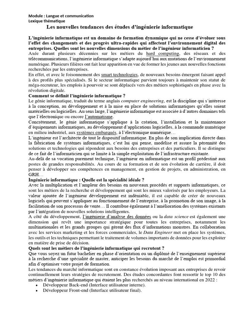 L’ingénierie informatique est un domaine de formation dynamique qui ne cesse d’évoluer sous