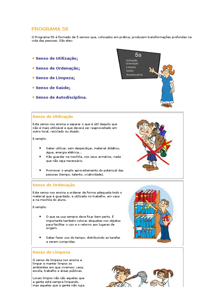 programa 5S e os benefícios para a escola. Agindo assim, a escola estará trabalhando na conscientização