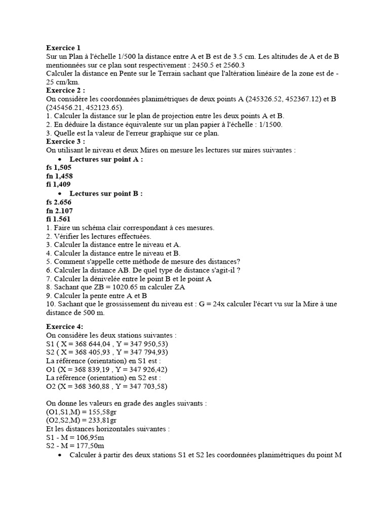 • Calculer à partir des deux stations S1 et S2 les coordonnées planimétriques du point M