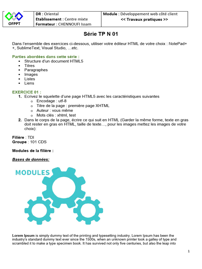 Dans l’ensemble des exercices ci-dessous, utiliser votre éditeur HTML de votre choix : NotePad+