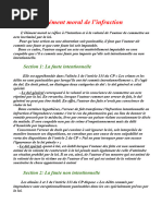 - Elément moral, (une faute)