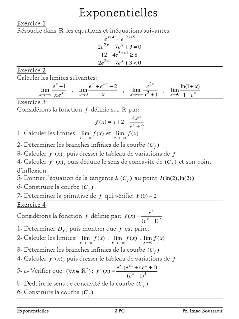 4- Montrer que la courbe (C f ) admet un point d’inflexion à déterminer.