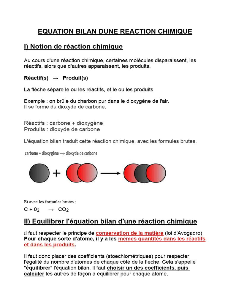 EQUATION BILAN DUNE REACTION CHIMIQUE