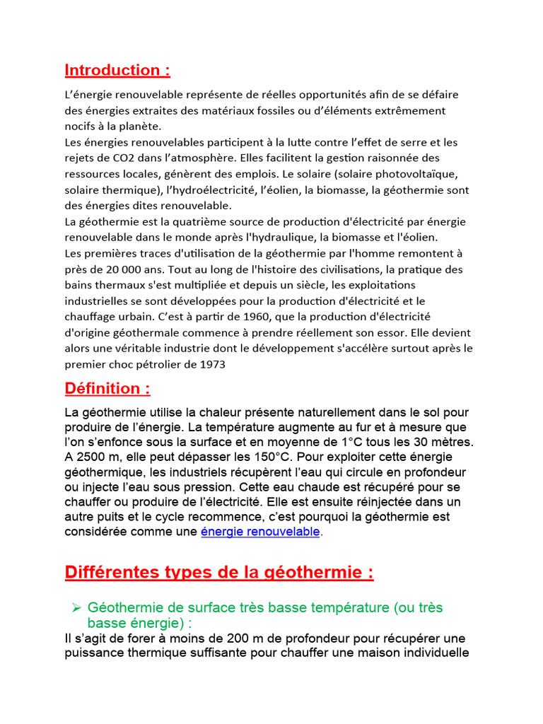 d'origine géothermale commence à prendre réellement son essor. Elle devient