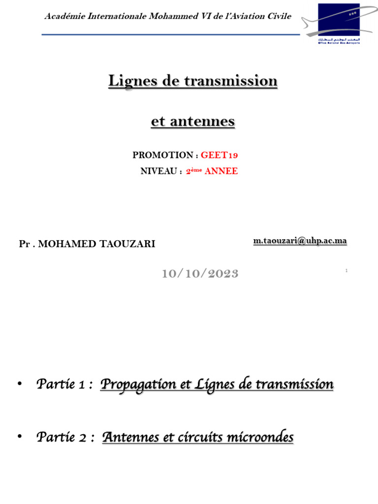 • Partie 1 : Propagation et Lignes de transmission