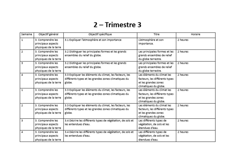2 3. Comprendre les 3.3 Expliquer les éléments du climat, les facteurs, les Les éléments du climat les 2 heures