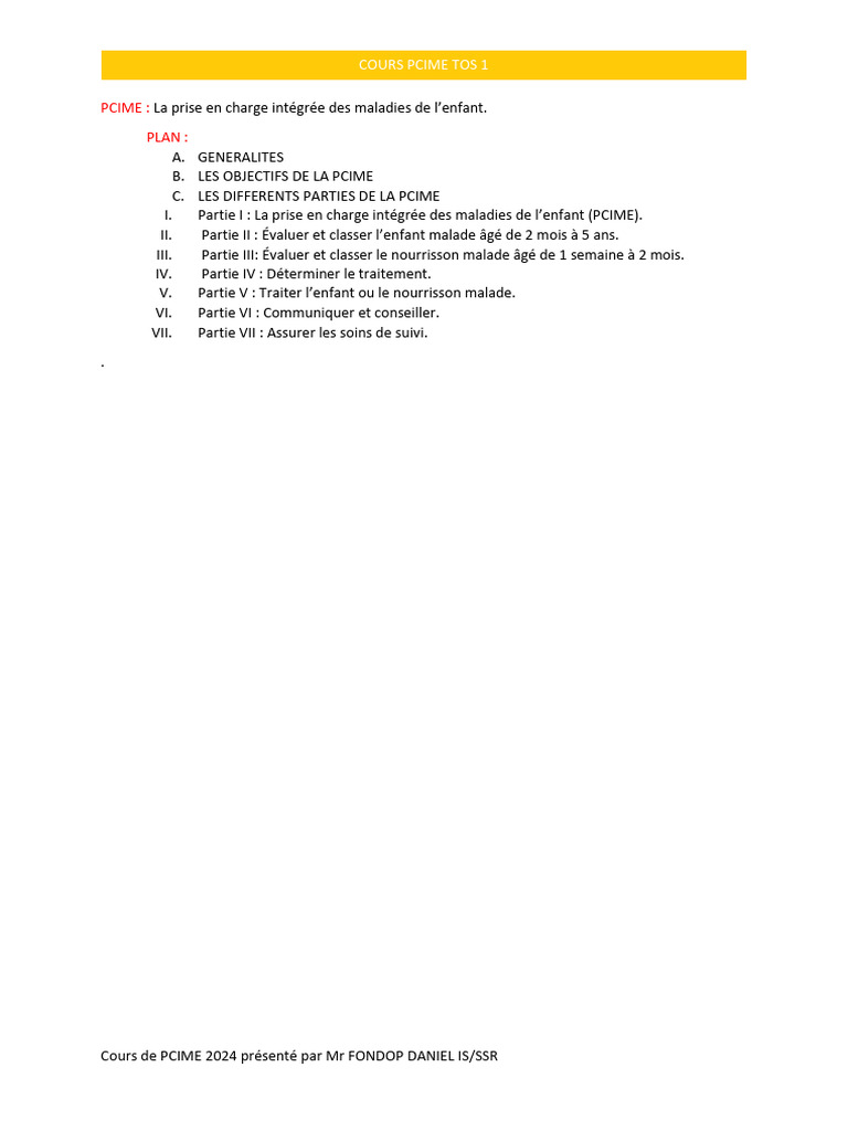 Cours PCIME 2024 : Prise en charge enfant