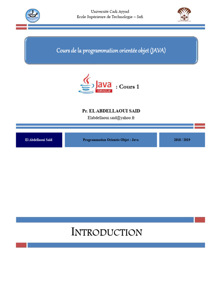 SAID EL ABDELLAOUI Programmation Orientée Objet : Java 2018/ 2019