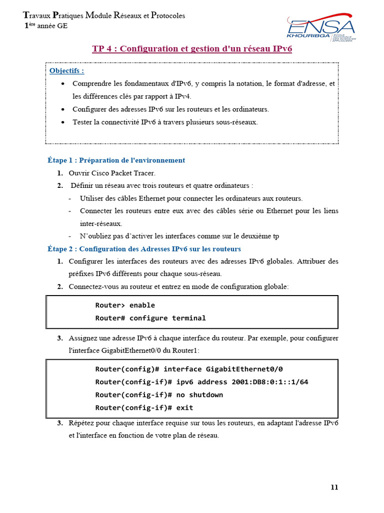 TP 4 : Configuration et gestion d'un réseau IPv6