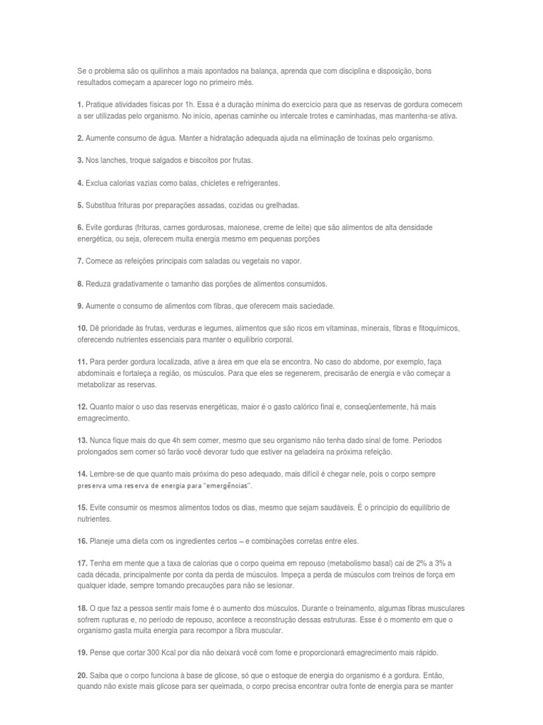 14. Lembre-se de que quanto mais próxima do peso adequado, mais difícil é chegar nele, pois o corpo sempre