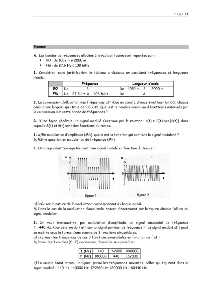 1. a) En modulation d’amplitude (MA), quelle est la fonction qui contient le signal modulant ?
