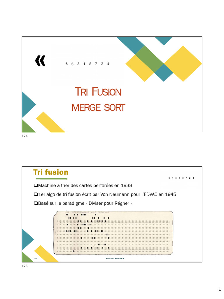 1er algo de tri fusion écrit par Von Neumann pour l’EDVAC en 1945
