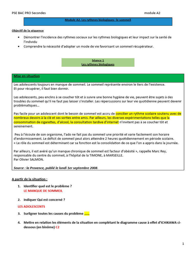 Doc 4 les cycles du sommeil source PSE bac pro seconde Delagrave 2016