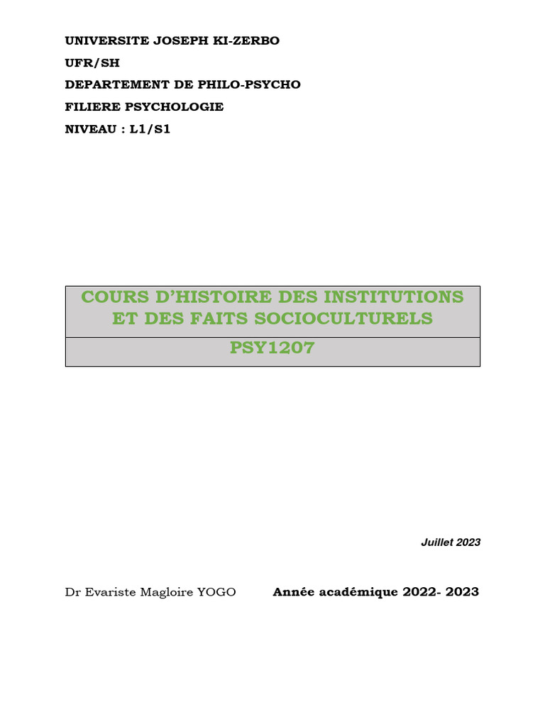 Dr Evariste Magloire YOGO Année académique 2022- 2023