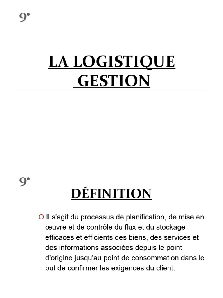 9• La logistique est le processus de