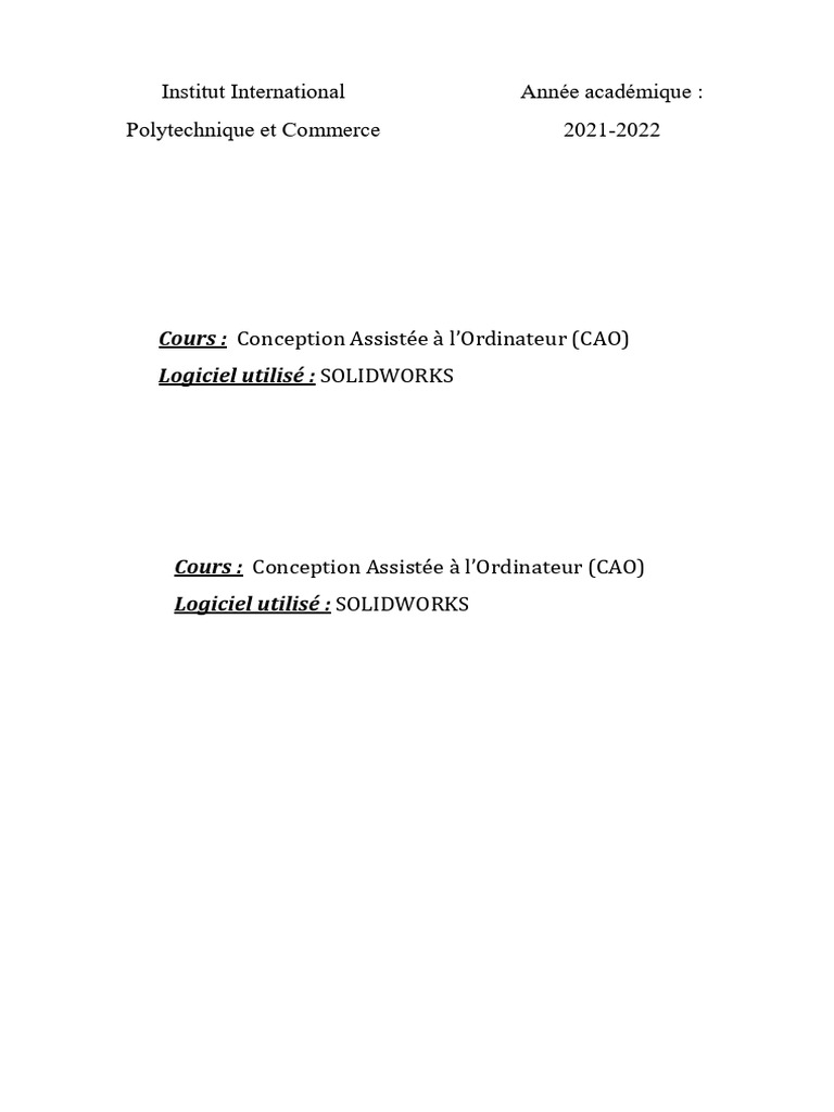 Cours : Conception Assistée à l’Ordinateur (CAO)