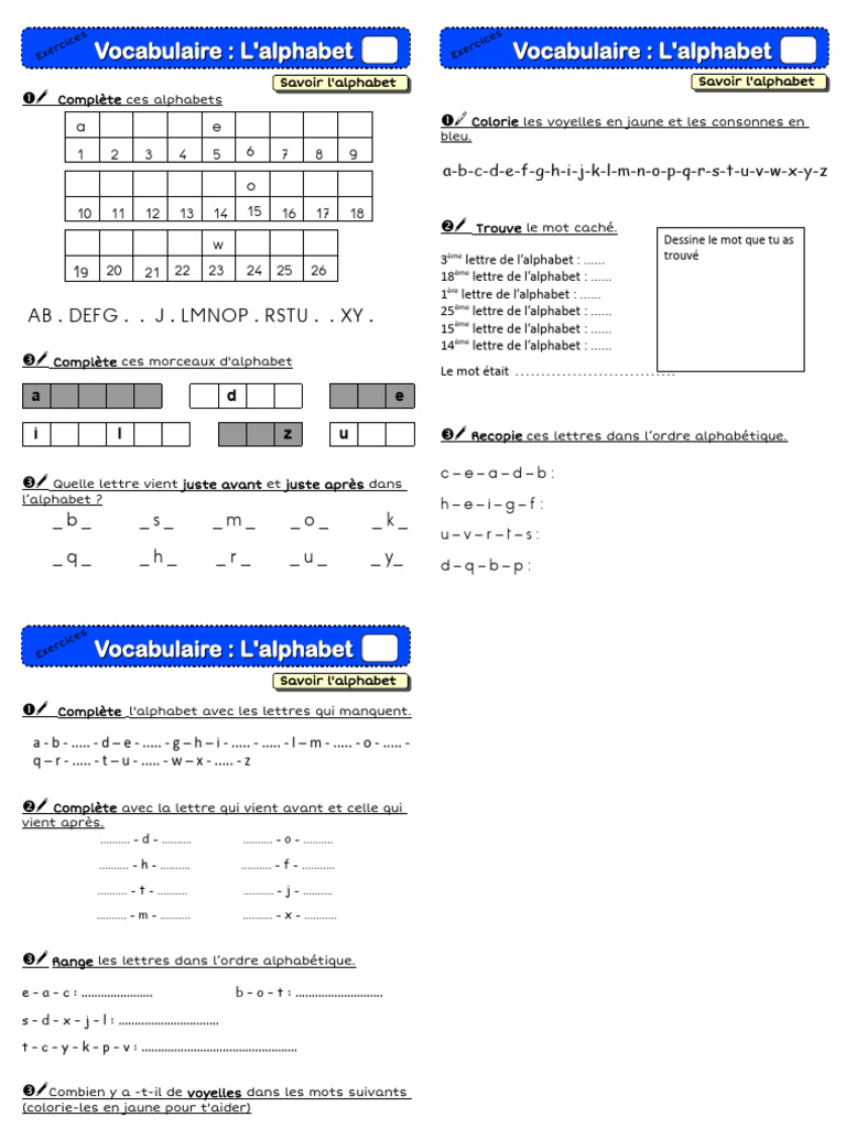 3e Range ces lettres dans l'ordre alphabétique 3e Range ces lettres dans l'ordre alphabétique