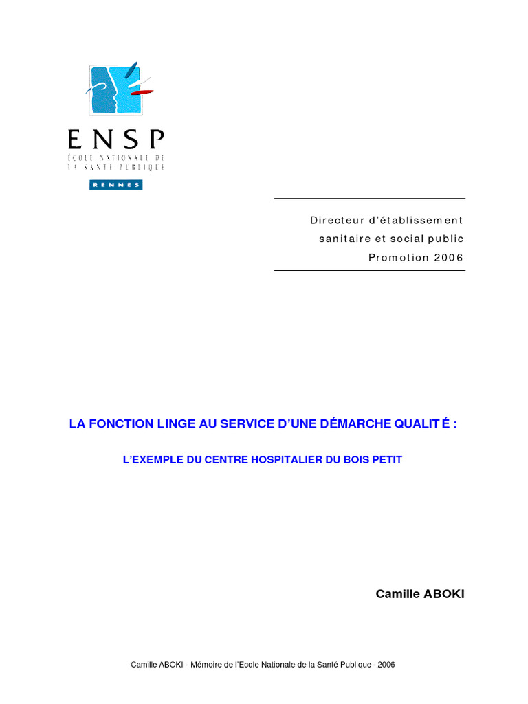 Camille ABOKI - Mémoire de l’Ecole Nationale de la Santé Publique - 2006