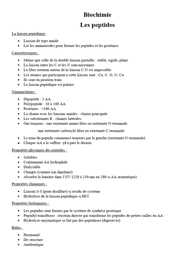 Propriétés physiques des peptides :