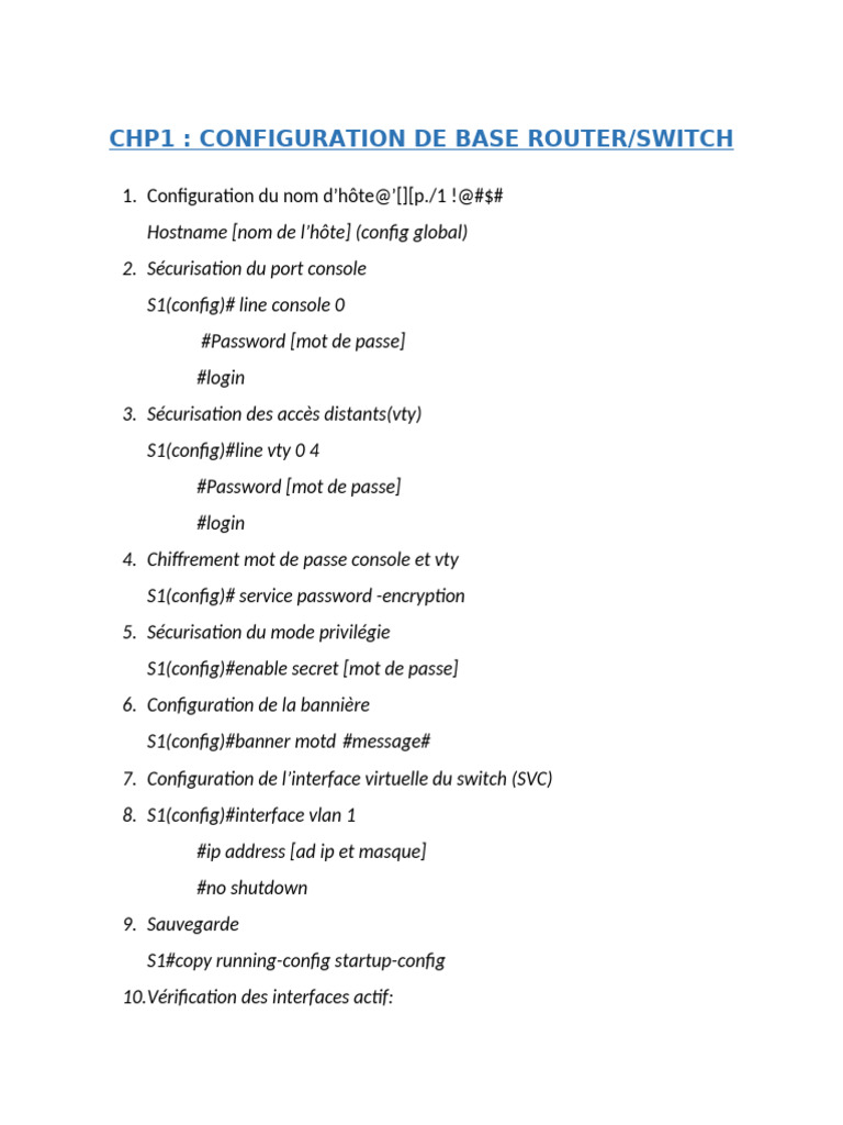 CHP1 : CONFIGURATION DE BASE ROUTER/SWITCH