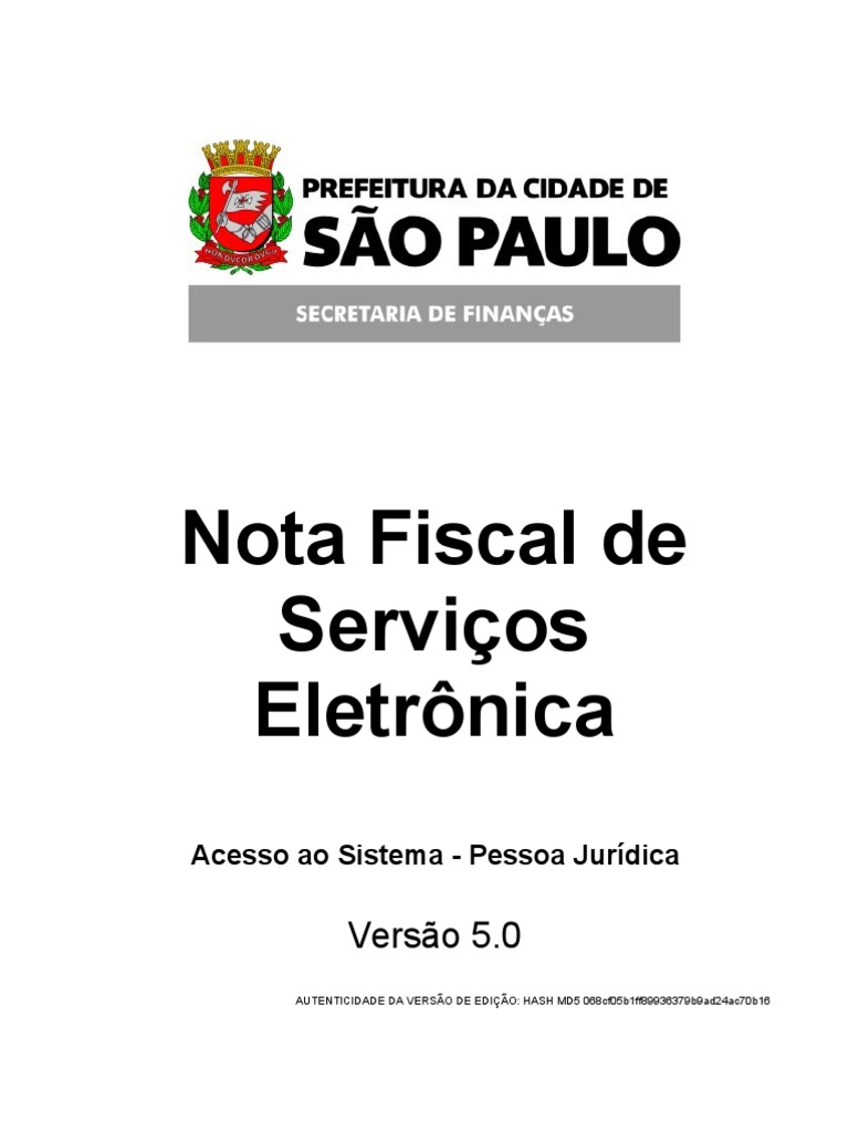 Para os demais prestadores de serviço que acessarem o sistema via Senha Web. emitido por Autoridade Certificadora credenciada pela Infraestrutura de Chaves Públicas Brasileira – ICP-Brasil. o acesso ao sistema da NFS-e deverá ser efetuado por meio de Certificado Digital para todas as Pessoas Jurídicas emitentes de NFS-e. bem como pelos prestadores de serviço inscritos no Simples Nacional. devendo conter o número de inscrição no Cadastro Nacional da Pessoa Jurídica . haverá limitações de acesso às funcionalidades do sistema (vide a seção Anexos. consulte a Instrução Normativa SF/SUREM nº08. O acesso ao sistema da NFS-e poderá ainda ser realizado mediante certificado digital de pessoa física ou de outra pessoa jurídica. Será exigido um certificado digital para cada raiz do número de inscrição no Cadastro Nacional da Pessoa Jurídica – CNPJ. Acesso ao sistema da NFS-e Versão do Manual: 5.1. de 24/09/2010. A3 ou A4.Nota Fiscal de Serviços Eletrônica– NFS-e 2. Para tanto. Certificação Digital Atenção: conforme disposto em Instrução Normativa SF/SUREM nº 08/2010. Consulte a seção de Legislação no site da Nota Fiscal Paulistana para maiores informações a respeito da obrigatoriedade. obrigados à utilização de Certificação Digital. é obrigatório o acesso ao sistema da NFS-e por meio de Certificação Digital para todos os prestadores de serviço emitentes de NFS-e. desde que devidamente cadastradas no sistema da NFS-e pela pessoa jurídica detentora do certificado digital inicial. no submenu “Informações Gerais”. disponível para download na aba “Legislação”. O certificado digital utilizado deverá ser do tipo A1.0 pág. 2. clique em “Acesso ao Sistema”. Acessando o sistema NFS-e via Certificado Digital. Para maiores informações. exceto as optantes pelo Simples Nacional. no final deste Manual). exceto optantes pelo Simples Nacional. . 13 O acesso ao sistema da NFS-e poderá ser efetuado por meio de duas maneiras distintas: Certificação Digital: desde 01/01/2011.CNPJ do proprietário do certificado digital. Senha Web: poderá ser utilizada pelos tomadores de serviço pessoa jurídica ou física. A pessoa jurídica que possuir certificado digital válido poderá acessar o sistema da NFS-e sem a necessidade de utilização da senha web.