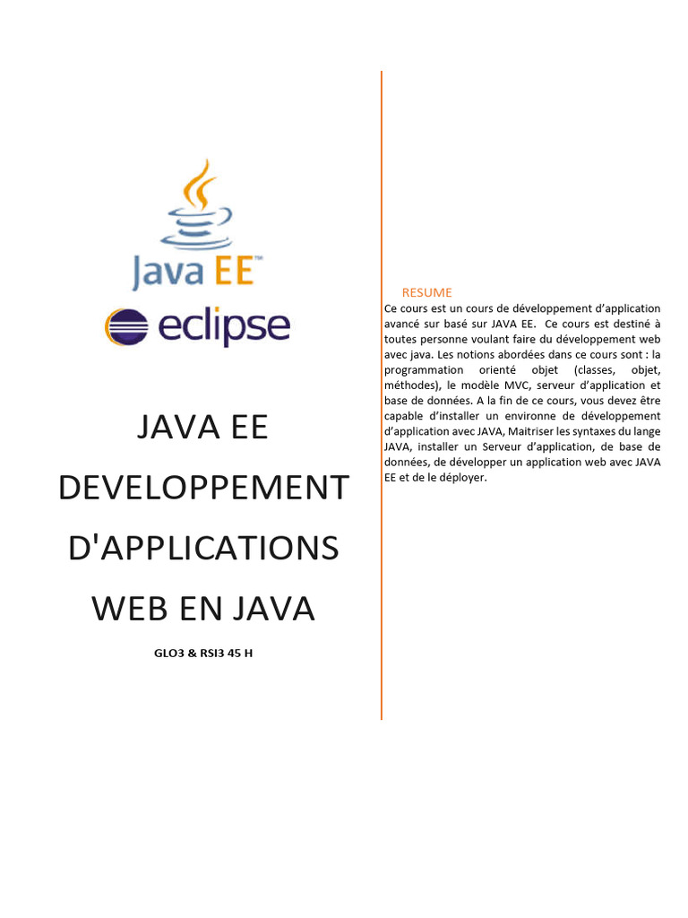 ● Le chapitre 1 (spécifications de Java EE) présente le langage Java, les règles de nommage ainsi que l’installation