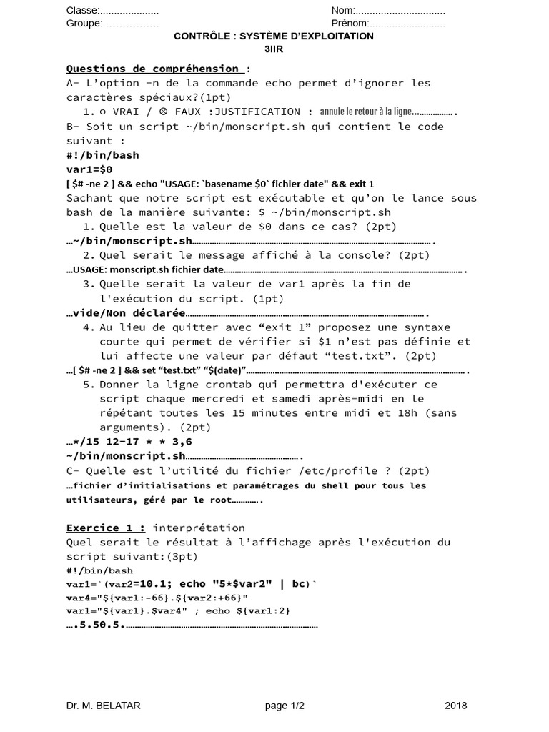 CONTRÔLE : SYSTÈME D’EXPLOITATION