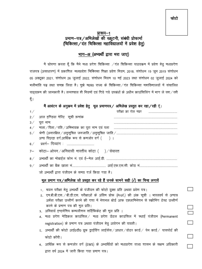 1- p;u ijh{kk gsrq vH;FkhZ ds iath;u dh QksVks ;qDr izfr vFkok izos'k i=A