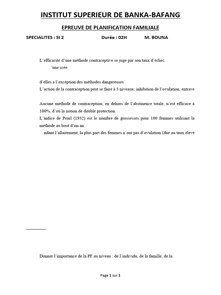 PARTIE A : Définitions : planning familial, indice de Pearl 2pts