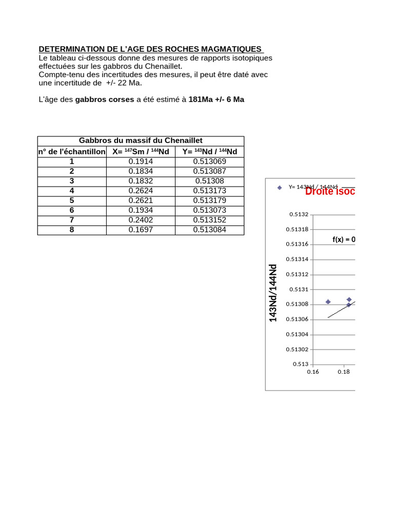 n° de l'échantillon X= 147Sm / 144Nd Y= 143Nd / 144Nd